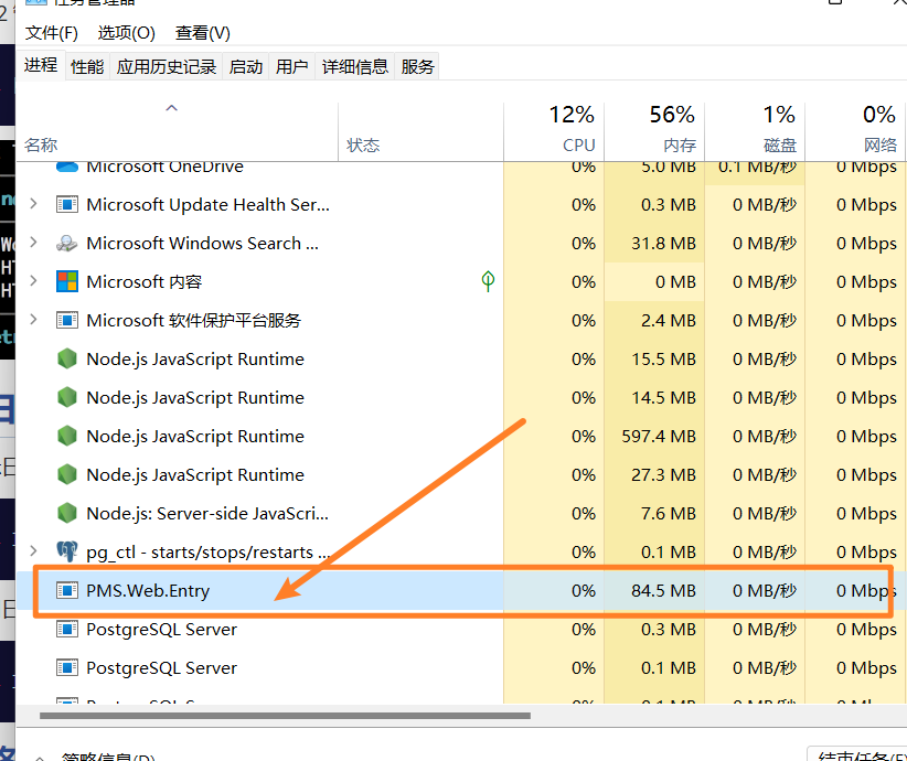 pms.exe 为项目发布后的启动层名称,如果名称包含 空格,则使用双引号包裹,如 "p ms.exe"。